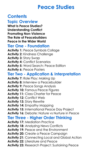 Peace Studies Worksheet Activity Booklet