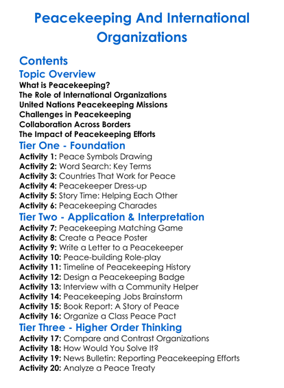 Peacekeeping And International Organizations Worksheet Activity Booklet