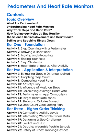 Pedometers And Heart Rate Monitors Worksheet Activity Booklet