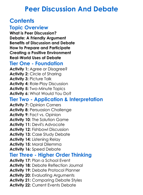 Peer Discussion And Debate Worksheet Activity Booklet