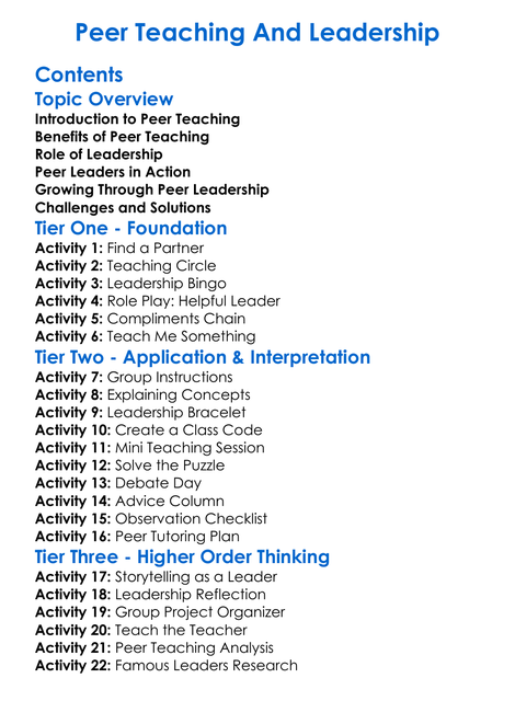 Peer Teaching And Leadership Worksheet Activity Booklet