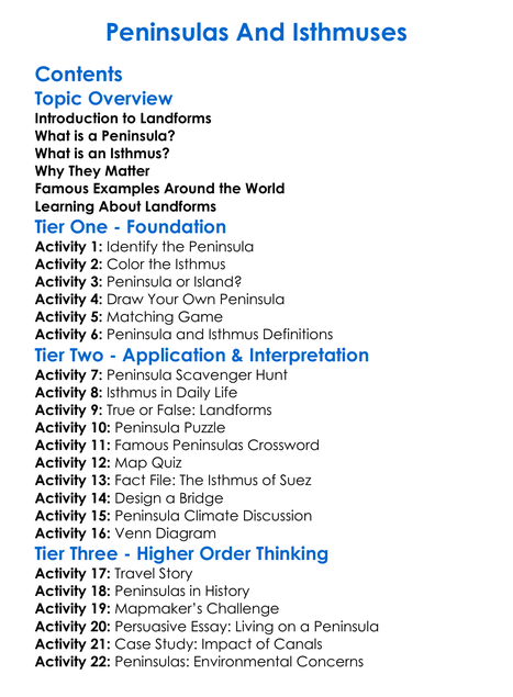 Peninsulas And Isthmuses Worksheet Activity Booklet