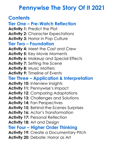 Pennywise The Story Of It 2021 Worksheet Activity Booklet