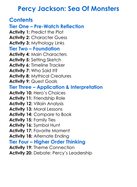 Percy Jackson Sea Of Monsters Worksheet Activity Booklet