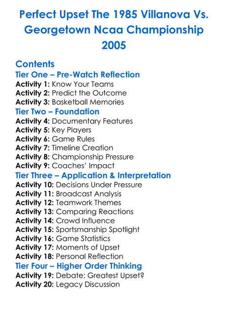 Perfect Upset The 1985 Villanova Vs Georgetown Ncaa Championship 2005 Worksheet Activity Booklet