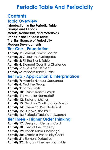 Periodic Table And Periodicity Worksheet Activity Booklet