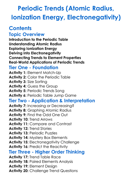 Periodic Trends Atomic Radius Ionization Energy Electronegativity Worksheet Activity Booklet