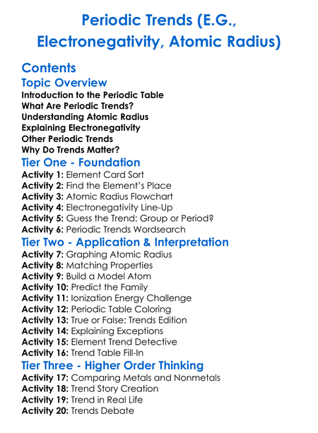 Periodic Trends Eg Electronegativity Atomic Radius Worksheet Activity Booklet