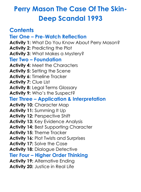 Perry Mason The Case Of The Skin-Deep Scandal 1993 Worksheet Activity Booklet