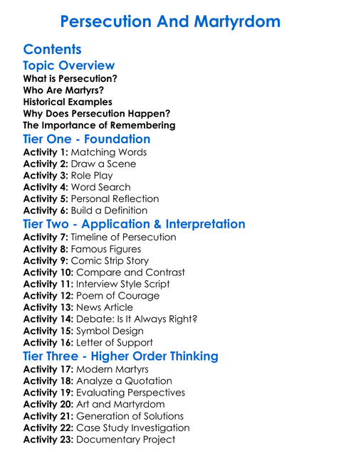 Persecution And Martyrdom Worksheet Activity Booklet