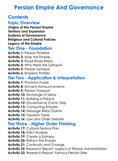 Persian Empire And Governance Worksheet Activity Booklet