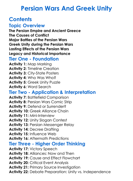 Persian Wars And Greek Unity Worksheet Activity Booklet