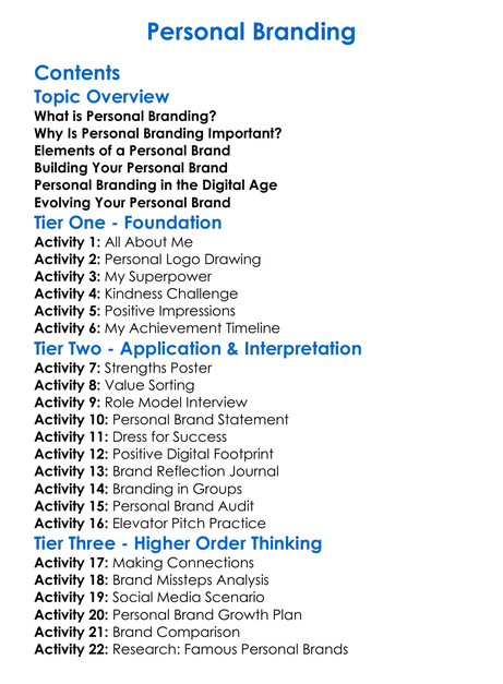 Personal Branding Worksheet Activity Booklet