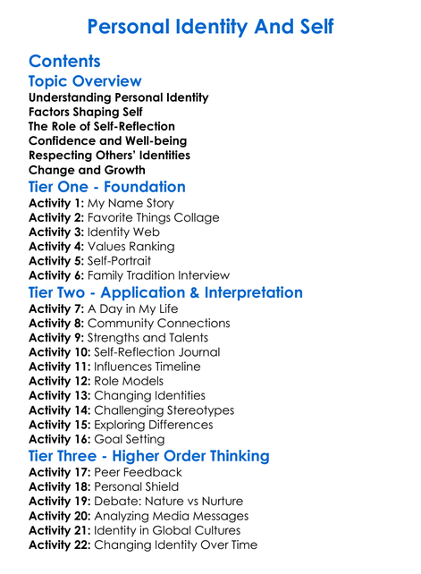 Personal Identity And Self Worksheet Activity Booklet
