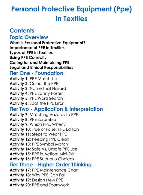 Personal Protective Equipment Ppe In Textiles Worksheet Activity Booklet