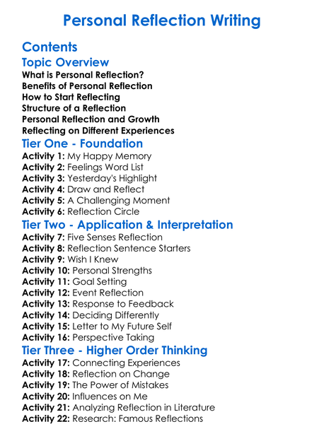 Personal Reflection Writing Worksheet Activity Booklet