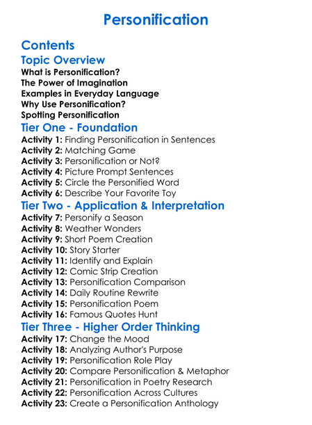 Personification Worksheet Activity Booklet