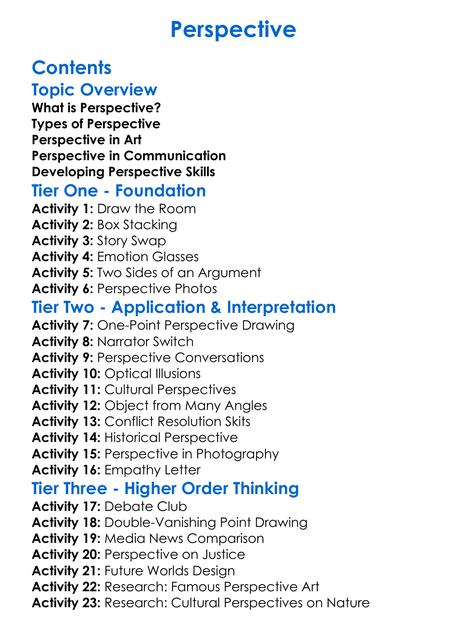 Perspective Worksheet Activity Booklet
