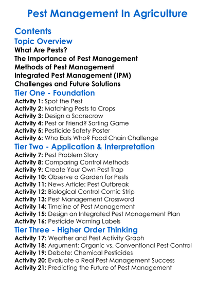 Pest Management In Agriculture Worksheet Activity Booklet