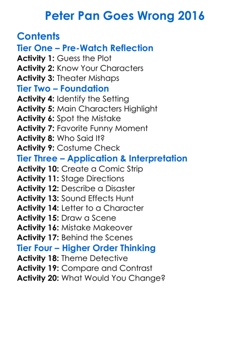 Peter Pan Goes Wrong 2016 Worksheet Activity Booklet