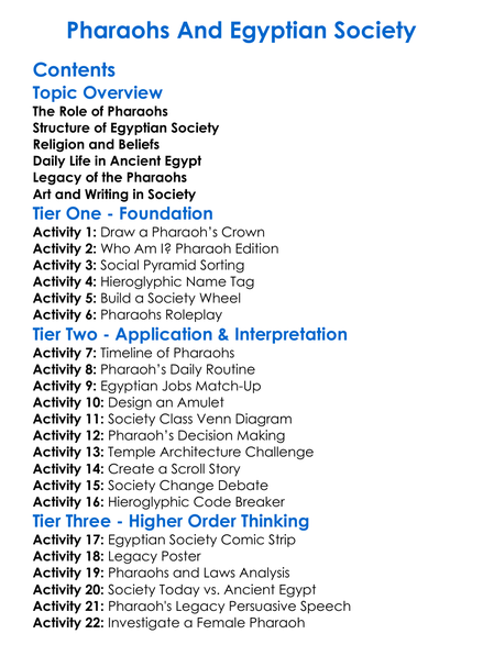 Pharaohs And Egyptian Society Worksheet Activity Booklet