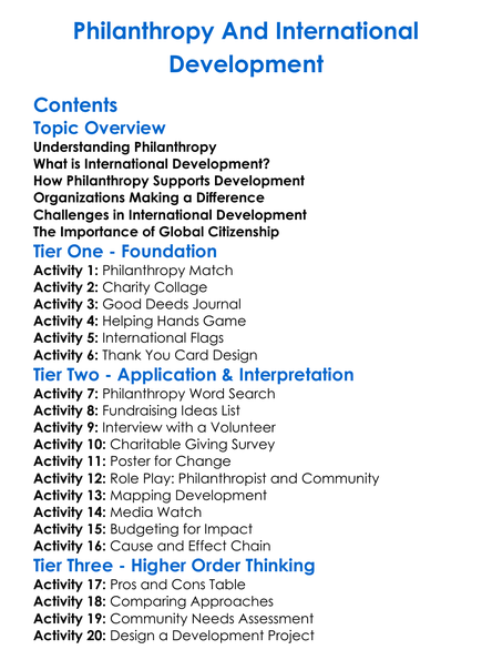 Philanthropy And International Development Worksheet Activity Booklet