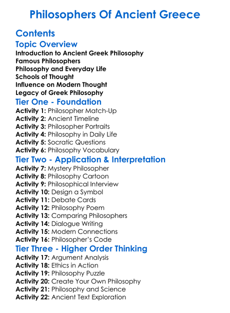Philosophers Of Ancient Greece Worksheet Activity Booklet