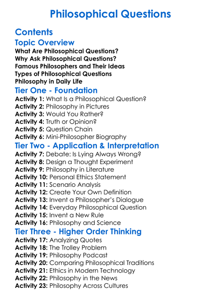 Philosophical Questions Worksheet Activity Booklet