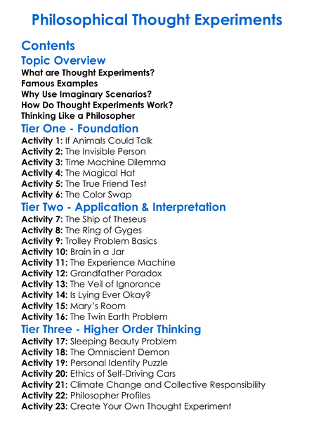 Philosophical Thought Experiments Worksheet Activity Booklet