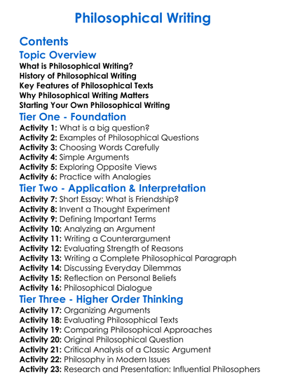 Philosophical Writing Worksheet Activity Booklet