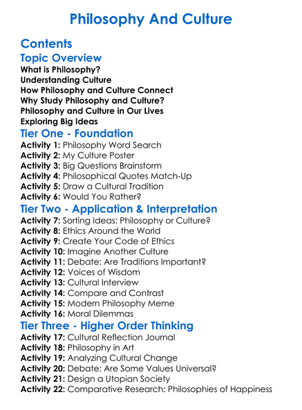 Philosophy And Culture Worksheet Activity Booklet