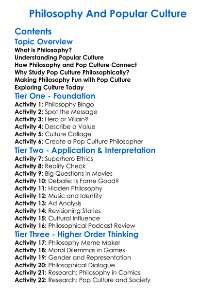 Philosophy And Popular Culture Worksheet Activity Booklet