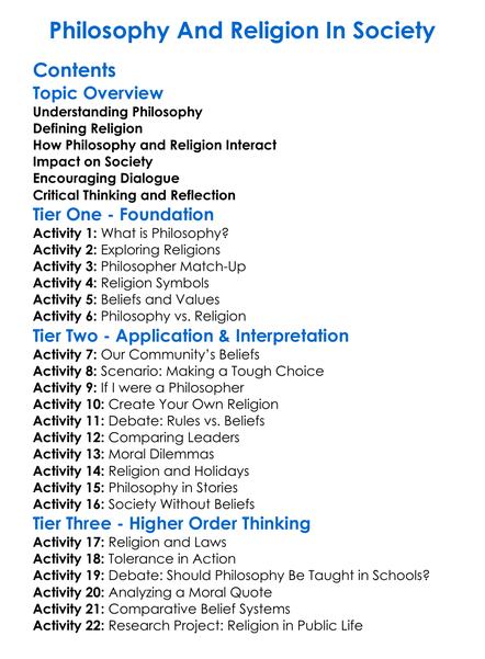 Philosophy And Religion In Society Worksheet Activity Booklet