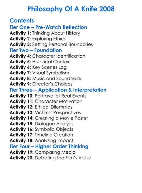 Philosophy Of A Knife 2008 Worksheet Activity Booklet