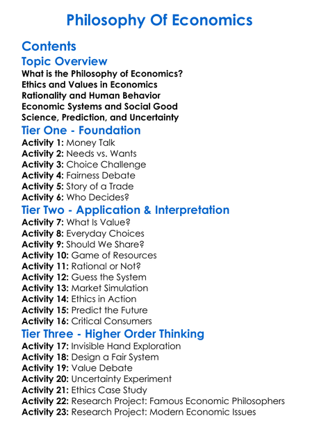 Philosophy Of Economics Worksheet Activity Booklet
