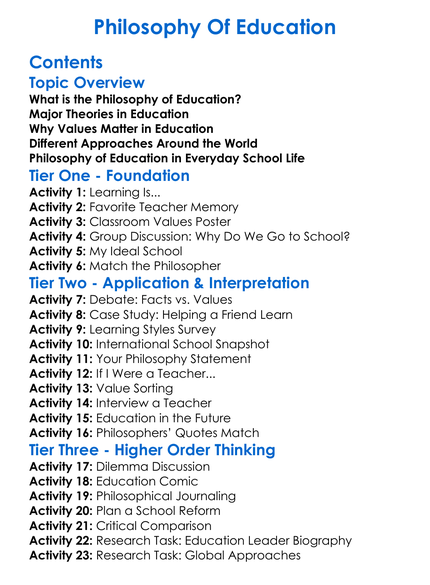 Philosophy Of Education Worksheet Activity Booklet