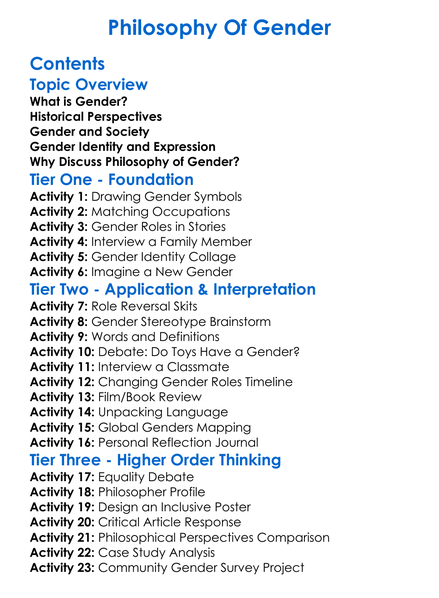 Philosophy Of Gender Worksheet Activity Booklet