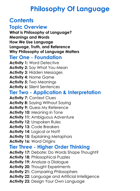 Philosophy Of Language Worksheet Activity Booklet