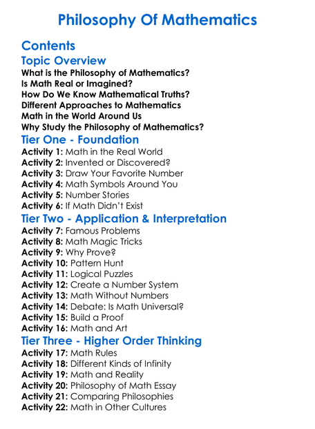 Philosophy Of Mathematics Worksheet Activity Booklet