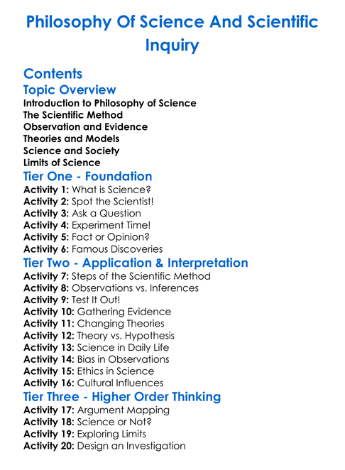 Philosophy Of Science And Scientific Inquiry Worksheet Activity Booklet