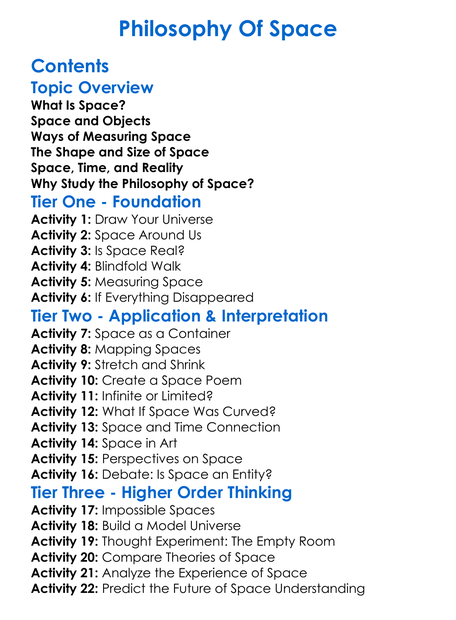 Philosophy Of Space Worksheet Activity Booklet