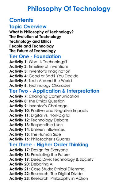 Philosophy Of Technology Worksheet Activity Booklet
