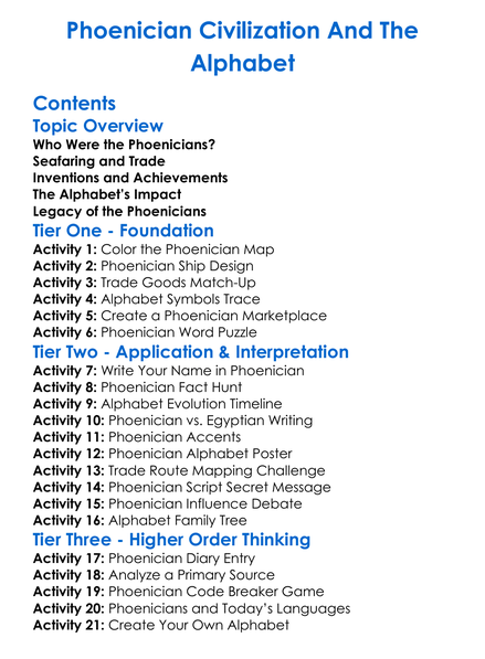 Phoenician Civilization And The Alphabet Worksheet Activity Booklet