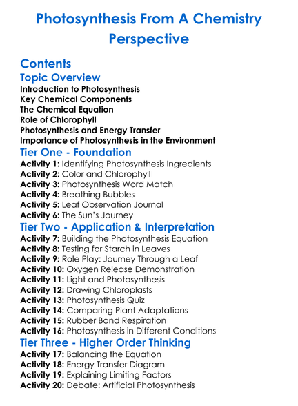 Photosynthesis From A Chemistry Perspective Worksheet Activity Booklet