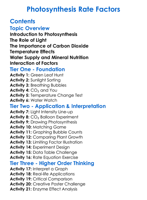 Photosynthesis Rate Factors Worksheet Activity Booklet