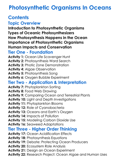 Photosynthetic Organisms In Oceans Worksheet Activity Booklet