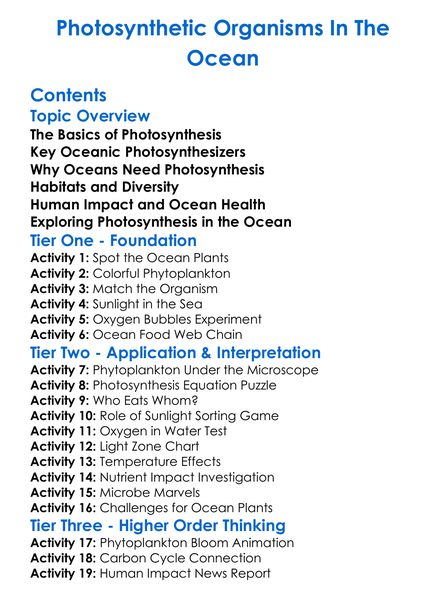 Photosynthetic Organisms In The Ocean Worksheet Activity Booklet