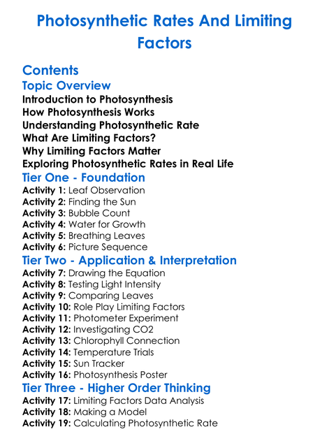 Photosynthetic Rates And Limiting Factors Worksheet Activity Booklet