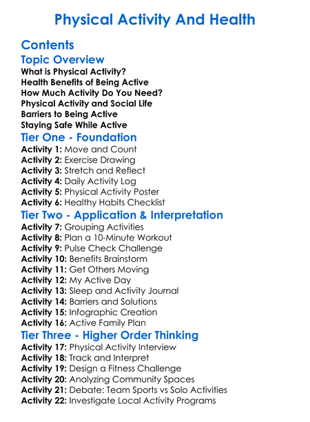 Physical Activity And Health Worksheet Activity Booklet
