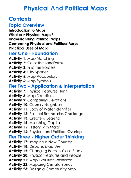 Physical And Political Maps Worksheet Activity Booklet